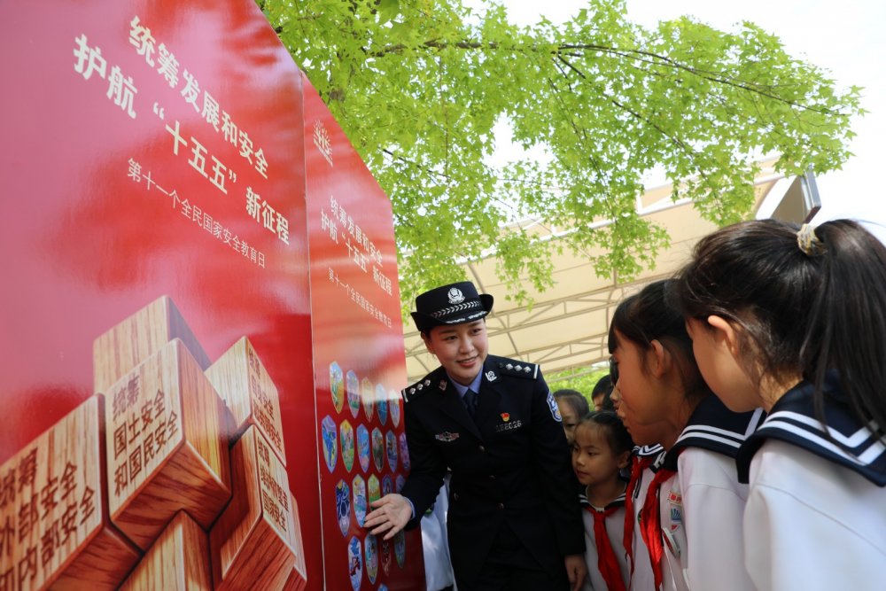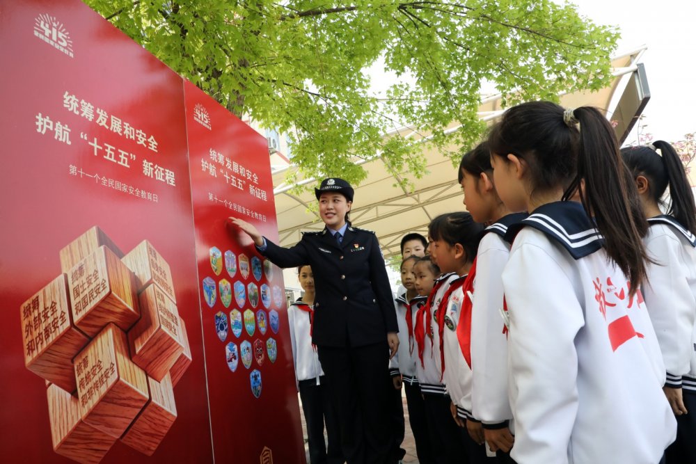 2026年4月14日,在山东省滨州市博兴县第一小学,博兴县公安局民警在向小学生普及国家安全相关知识。当日,在全民国家安全教育日来临前夕,山东省滨州市博兴县第一小学联合博兴县公安局开展“国家安全 你我同行”活动,博兴县公安局民警走进校园,通过向小学生现场讲解、互动问答等方式,向他们普及国家安全相关法律法规和安全防范常识,从小提升国家安全法治意识,自觉抵制破坏和损害国家安全的行为,形成维护国家安全人人有责的浓厚氛围。陈彬 摄