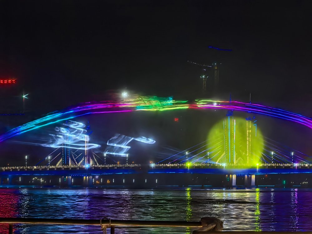 3月28日,北京通州大运河岸,结合光影景观装置、岸边舞台演艺、伴随船表演等形式,游客乘船体验水船桥岸联动的实景演艺。张晓寅 摄