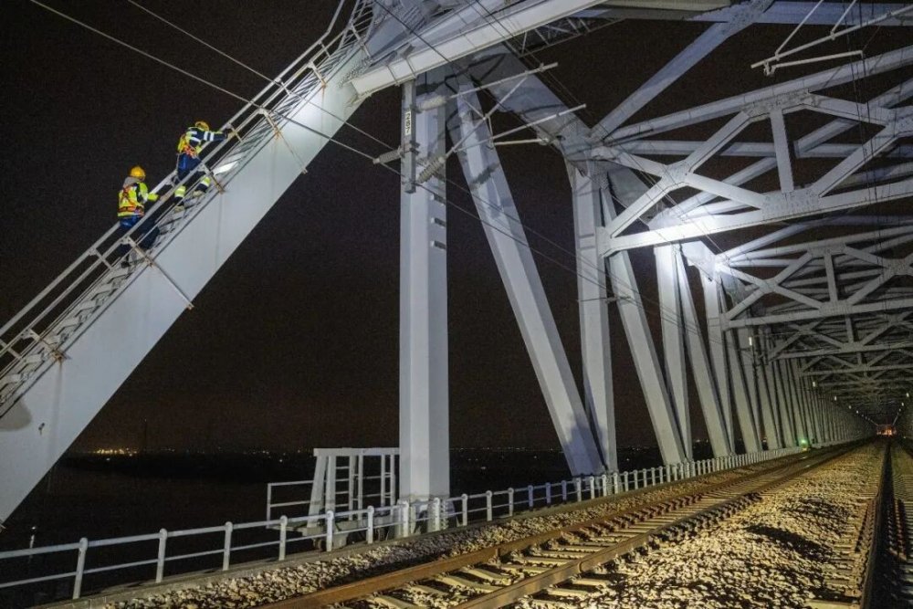 2月2日深夜,最后一班D7406次高铁驶过榕江特大桥。国铁广州局一支由“90后”“00后”组成的年轻班组人员登上距江面80米高的桥架,顶着大风开启“天窗点”检修作业,守护铁路安全。荧光黄的工装,是夜色里最温暖的信号;默默的坚守,是万千旅客平安出行的底气。266座桥墩如钢铁卫士般屹立江间,900个支架构成精密的支撑网络,每一个数字背后都是对工程安全的极致坚守。他们在平凡岗位上,以专业与责任,筑起平安屏障。