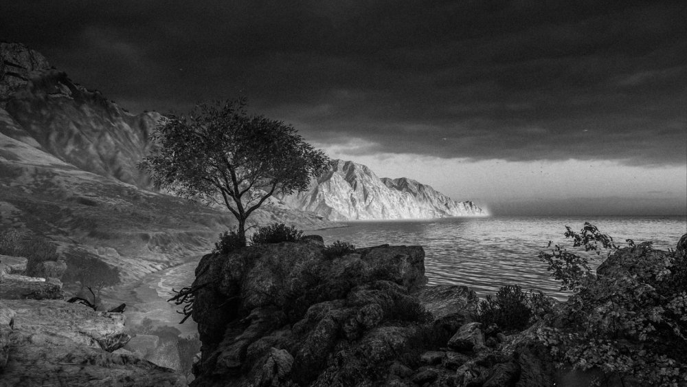 我试图探讨一个问题——评价一张影像是否是摄影作品,是通过获得影像的器材还是影像最终呈现的视觉效果。这组作品的创作过程中,我没有使用传统的光学照相机,而是通过在游戏里面对屏幕截图的方式,后期去除掉影像画面中的游戏元素(例如任务指示、子弹数量、血量剩余等),调出黑白色调和噪点等效果来尽量模拟出相机拍摄后的影像效果。董福临