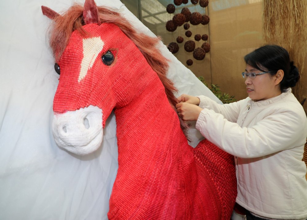 随着农历新年的日益临近,山东省滨州市博兴县锦秋街道湾头村草编民间艺人王贵芝历时3个多月,采用传统草编工艺创作出草编作品“千里马”,其最大特色在于创新性采用玉米皮这一纯天然环保材料进行编织创作。该作品形神兼备,高2米,长2.2米,精准诠释出龙马精神所含的坚韧不拔,奋勇争先的精神内核。陈彬 摄