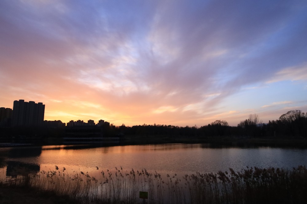 暮色沉落时,绯霞浸软了天的边缘,城市剪影伏在岸线,把暖光揉碎在湖波里。晚风轻碰芦苇,倒影便晃成软绵的晕。此刻喧声都沉在水纹下,只剩霞与湖,把时光温成静悄悄的软。