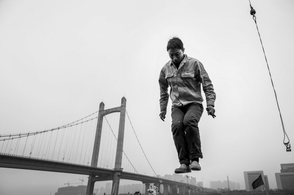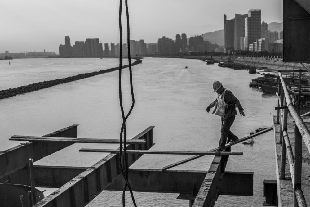 闽江从福州城穿流而过,在南台岛被一分为二。家的窗外是乌龙江湿地公园,我时常远眺。驶过的船只划破江上的光影,马达声缓缓地由远及近又渐弱,覆盖了呼啸而过的车行嘈杂,意外地让人平静。好天气里沿着江岸散步、慢跑、骑行的人,空中摇曳的风筝,搭配那 些有时近乎静止的垂钓者,透着一股热闹与安逸。这样的场景算是福州人生活中很日常的一部分,并没有什么特别。熟悉的地方是否还有风景?两年前我们杂志(这里应该注明是什么杂志,加编者注)找了几位本土摄影师,希望从他们的镜头里读到更多的福州。在杨勇的“闽江人”系列中,我看到了从龙舟跃入江中的青年、浣洗衣物的老妪、老渡口的街市、造船厂的船坞……勾起无数回忆之余,更被这些充满戏剧性的闽江影像击中。杨勇在那些“并没有什么特别”的日常里,定格下了一个个真实却又特别的瞬间。 许灵忆