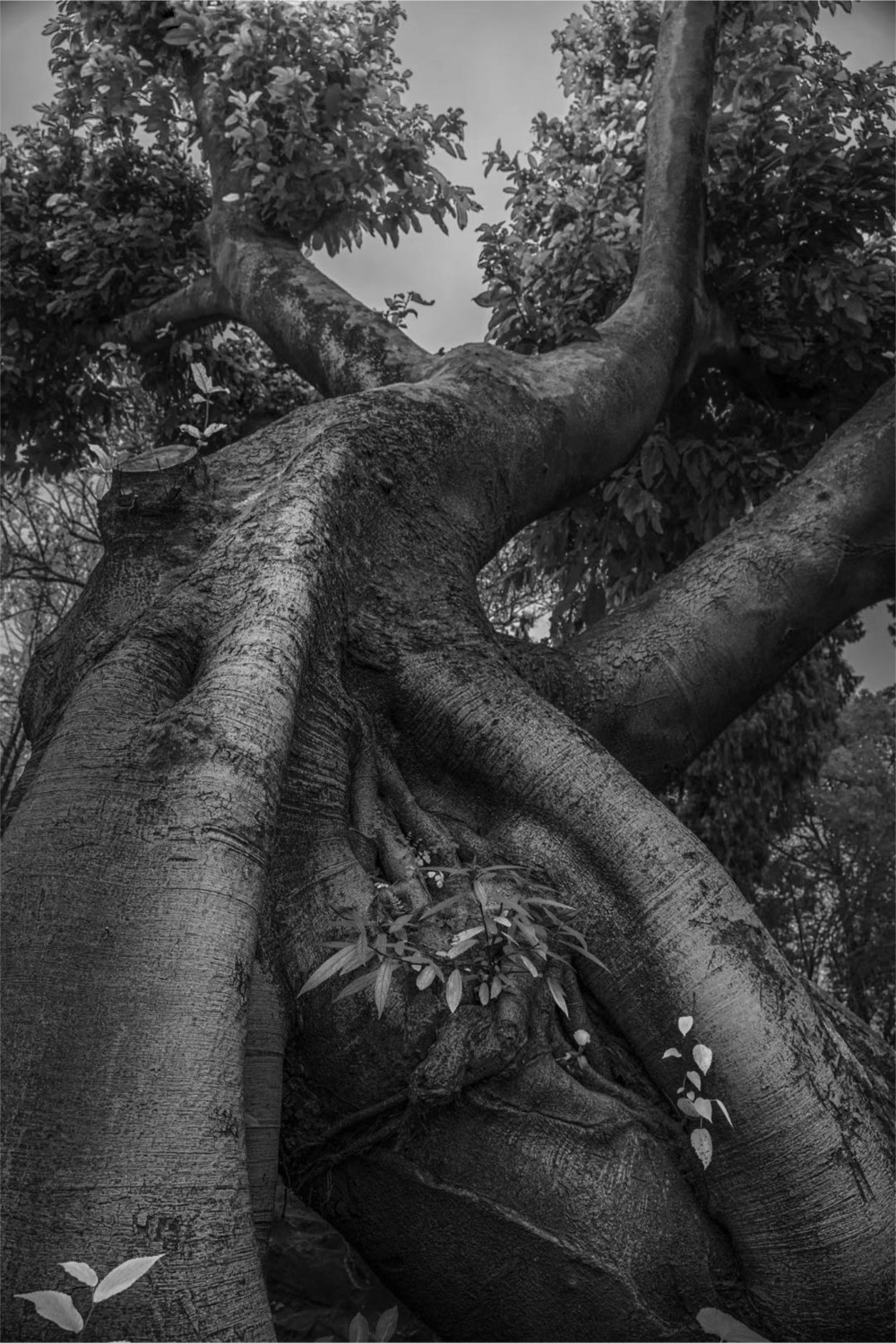 成都市郫都区望从祠内,一棵大树静静伫立,皲裂的树皮记录着岁月痕迹,新发的枝叶满溢蓬勃生机。