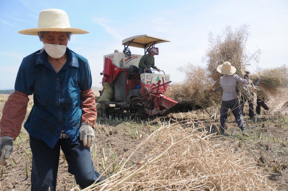 2011年5月29日,村民使用机器为油菜籽脱粒。