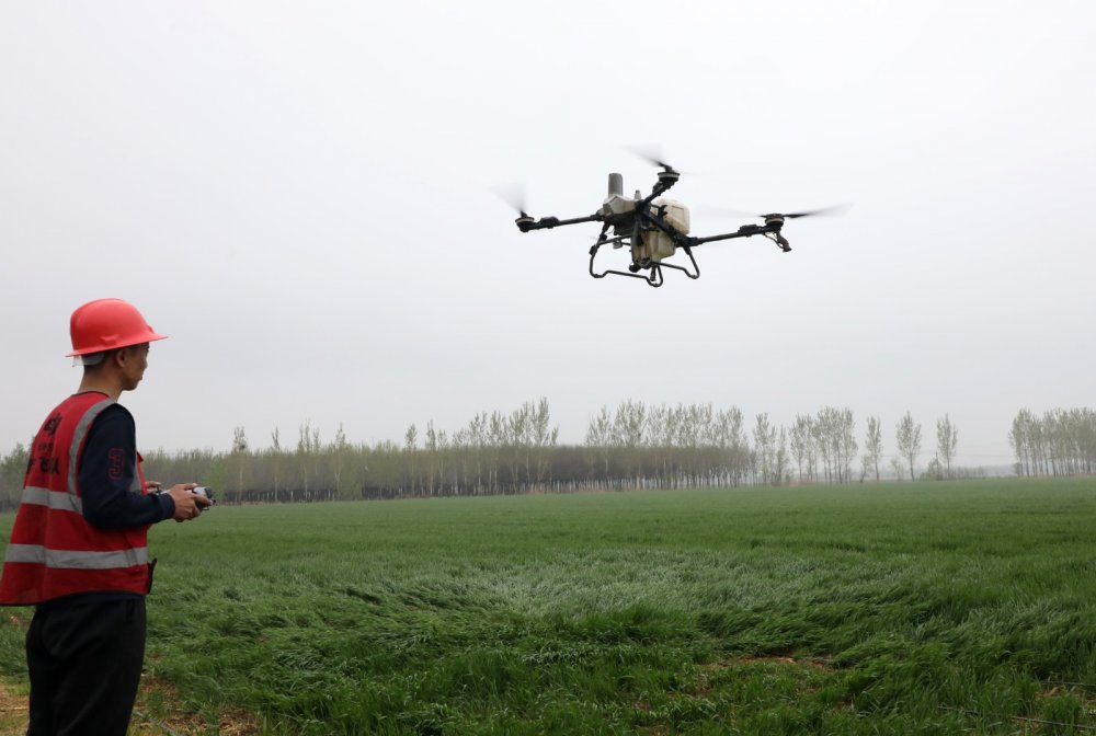 2026年4月9日,在山东省滨州市博兴县庞家镇张庄村,植保无人机、物联网、水肥一体化、滴灌等各类新技术、新设备赋能农业生产,在田间地头共同奏响了一支“春耕科技曲”。 陈彬 摄