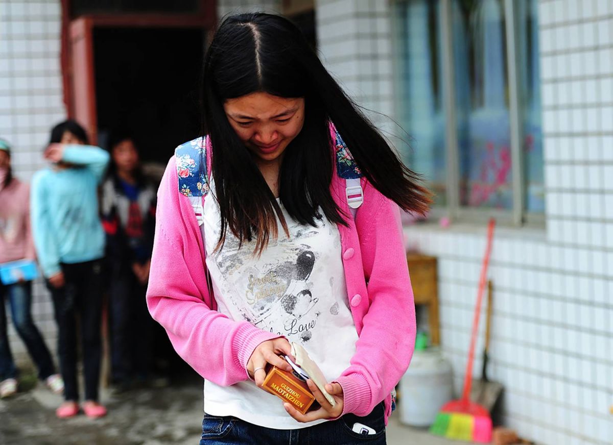 2012 年 7 月 7 日,贵州省毕节市百里杜鹃管理区大水乡,箐山本禹希望小学支教志愿者刘小庆与孩子们含泪离别。